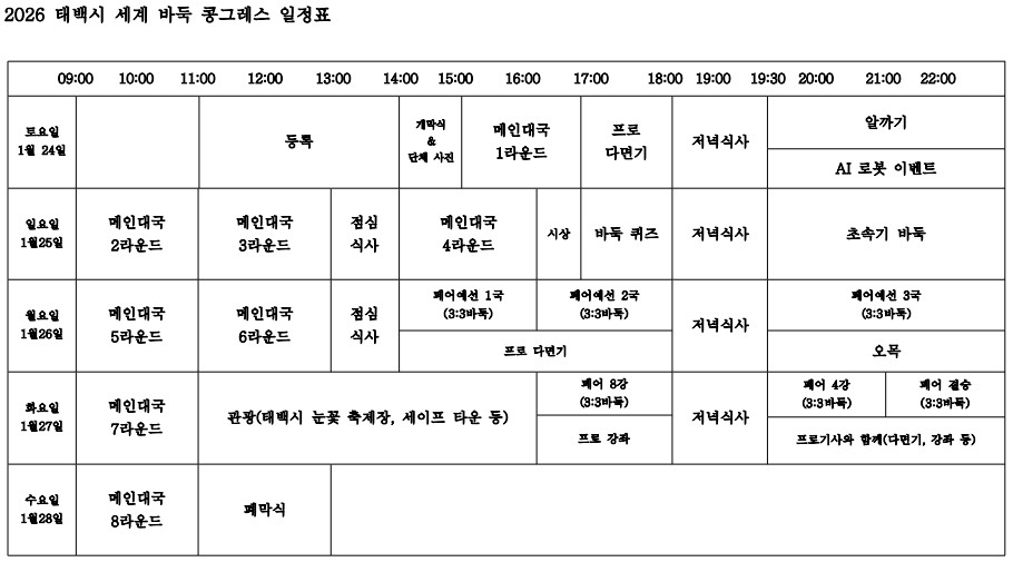 2025 태백시 세계 바둑 콩그레스 전체 일정표